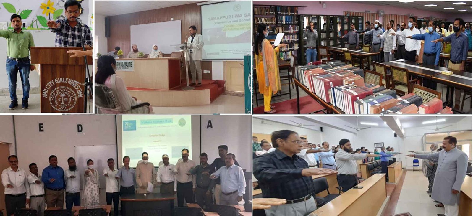 शिक्षा विभाग के अध्यक्ष प्रोफेसर नसरीन द्वारा दिलाई गई प्रतिज्ञा में शिक्षकों छात्रों और गैर-शिक्षण कर्मचारियों ने अपने दैनिक जीवन में ईमानदार और पारदर्शी होने और विभिन्न स्तरों पर भ्रष्टाचार को समाप्त करने के लिए लगन से काम करने की शपथ ली।