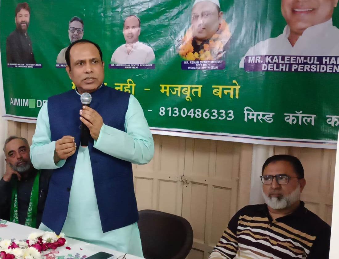 मुसलमानों-दलितों और कमज़ोरों पर ज़ुल्म में इज़ाफ़ा हो रहा है। सामाजिक तौर पर यह वर्ग नाइंसाफियों का शिकार है। मजलिस का मक़सद मुसलमानों और कमज़ोरों को ताक़तवर बनाना है। मुसलमान अपने साथ भेदभाव की वजह से बेअसर हो गए हैं।मजलिस चाहती है कि मुसलमान अपनी हैसियत को जाने और देश की तामीर व तरक़्क़ी में अपनी हिस्सेदारी अदा करें मगर यह तभी मुमकिन है जब मुसलमान सियासी तौर पर अपनी हिस्सेदारी हासिल करें। मजलिस अध्यक्ष ने कहा कि देश में एक तरफ महंगाई और बेरोज़गारी में बढ़ोतरी हो रही है लेकिन उससे ज़्यादा खतरनाक और देश के लिए तबाहकुन बात यह है कि मुसलमानों से नफ़रत में बढ़ोतरी हो रही है। खुद हुक्मरान वर्ग मुसलमानों से नफ़रत करता है। तथाकथित सेकुलर पार्टियां भी बहुसंख्यकों के ख़ौफ़ से मुसलमानों का नाम अपनी ज़बान पर लाना नहीं चाहती और चाहते है कि मुसलमानों उन्हें वोट देकर कुर्सी पर बैठाएँ लेकिन मुसलमानों की तालीम व तरक़्क़ी का कोई एजेंडा उनके पास नहीं है। अब वक्त आ गया है कि मुसलमानों को हार जीत की परवाह किए बग़ैर अपने उम्मीदवार को वोट दें ताकि कौमी सतह पर उनकी ताक़त का मुज़ाहिरा हो। मजलिस अध्यक्ष ने कहा कि लोग बैरिस्टर असदुद्दीन ओवैसी को बीजेपी का एजेंट और मजलिस को बी टीम कहते हैं जबकी कहने वाले खुद ही आर एस एस की नाजायज़ औलाद हैं। दिल्ली की आम आम आदमी पार्टी की तरफ़ इशारा करते हुए कलीमुल हफ़ीज़ ने कहा कि दिल्ली सरकार ने मुस्लिम इलाकों को पूरी तरह नजरअंदाज़ कर रखा है वहां सफाई सुथराई का बुरा हाल है पुलिस की दादागिरी खुलेआम है और हमारे चुने हुए नुमाइंदें जिनके नाम उर्दू में है ख़ामोश तमाशा देख रहे हैं।कलीमुल हफ़ीज़ कहा कि दिल्ली की सियासत में पिछले 20 साल में कुछ नहीं बदला है चंद लोग तो वह हैं जिनकी सिर्फ पार्टियां बदली हैं कभी वह जनता दल में थे कभी कांग्रेस से और आज आम आदमी पार्टी का झंडा उठाए हुए हैं ऐसे लोगों की कोई अख़लाक़ी क़द्र नहीं होती है अब वक़्त है कि अपनी क़यादत को मज़बूत किया जाए और अपनी हिस्सेदारी हासिल की जाए। प्रोग्राम में शाह आलम जनरल सेक्रेटरी , अब्दुल ग़फ़्फ़ार सिद्दीक़ी संगठन सचिव , ने भी ख़िताब किया ।निज़ामत ज्वाइंट सेक्रेट्री फ़हमीद हसन ने की ।