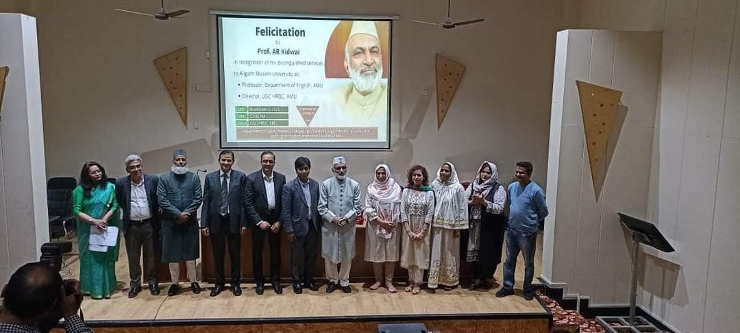 अलीगढ़। एएमयू के अंग्रेजी विभाग के शिक्षकों ने प्रोफेसर एआर किदवई के विदाई समारोह का आयोजन किया गया। समारोह का आयोजन अंग्रेजी विभाग की समीना खान , राशिद नेहल और मोहम्मद साजिदुल इस्लाम की ओर से आयोजित किया गया।