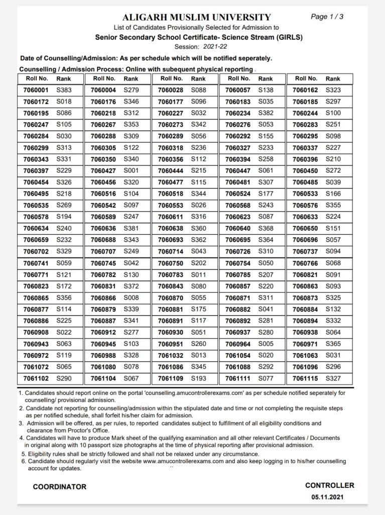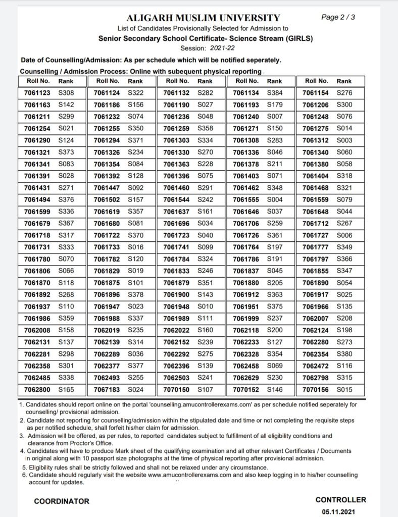 जिन लोगों का वेटिंग लिस्ट में नाम है उनको समय-समय पर एएमयू की वेबसाइट को देखना होगा ताकि उनकी बारी आने पर वह एडमिशन ले सके। परिणाम सूची एएमयू की वेबसाइट https://results.amucontrollerexams.com/result/results पर देखी जा सकती है।