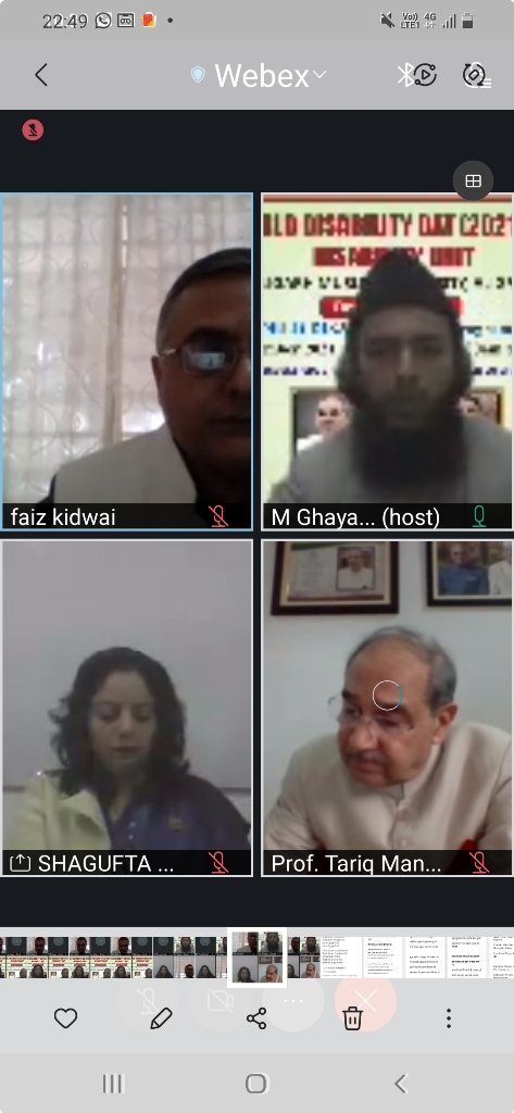 श्री फैज़ अहमद किदवई (आईएएस) ने विकलांग व्यक्तियों के कल्याण के लिए विभिन्न नीतिगत मुद्दों, सरकारी कार्यक्रमों और योजनाओं तथा राष्ट्रीय और अंतर्राष्ट्रीय कानूनों पर प्रकाश डाला।श्री साजिद जिया खान (कार्पाेरेट वक्ता और उपाध्यक्ष, रणनीति और विकास, सीआरएच) ने विकलांग व्यक्तियों के अंतर्राष्ट्रीय दिवस के महत्व पर प्रकाश डाला और विकलांग व्यक्तियों के मानवाधिकारों को प्राप्त करने के लिए असमानताओं को समाप्त करने का आह्वान किया।डा फर्रुख हफीज ने स्वागत भाषण दिया जबकि वीमेन्स कालिज की डा शगुफ्ता नियाज ने धन्यवाद ज्ञापित किया। इस अवसर पर छात्रों को हेडफोन और पेन ड्राइव बांटे गए। कार्यक्रम का संचालन गयासुद्दीन ने किया।