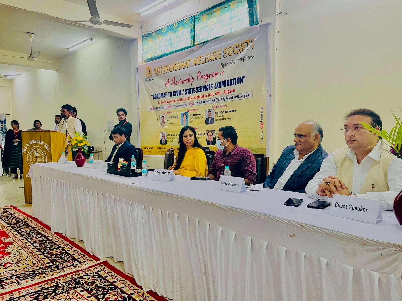 इस अवसर पर यूनिवर्सिटी के प्रोक्टर प्रोफेसर वसीम अली और डिप्टी प्रोक्टर डा. अली नवाज जै़दी ने भी कार्यक्रम को सम्बोधित किया और प्रतियोगी परीक्षाओं की तैयारी के बारे में विस्तृत जानकारी उपलब्ध कराई। कार्यक्रम का संचालन मुस्कुराहट वैलफेयर सोसायटी के सचिव सैयद अब्दुल रहमान और संस्थापक सदस्य सैयद कैफ हसन ने किया। अध्यक्षा नायला खान और उपाध्यक्ष इमरान आमिर ने अतिथियों का स्वागत किया।