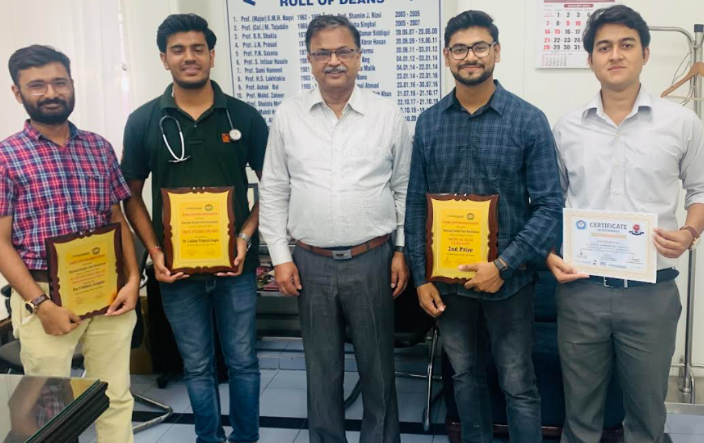 अलीगढ़, 24 अगस्तः अलीगढ़ मुस्लिम विश्वविद्यालय के जवाहरलाल नेहरू मेडिकल कॉलेज के इंटर्न डॉक्टरों और छात्रों ने हाल ही में नई दिल्ली के होटल रैडिसन ब्लू में आयोजित फेडरेशन ऑफ ऑल इंडिया मेडिकल एसोसिएशन -फेमा, नई दिल्ली के राष्ट्रीय सम्मेलन ( फेमाकोन-22) में कई पुरस्कार हासिल किये।डॉ. विभोर गुप्ता ने चिकित्सा उत्कृष्टता के लिए ‘डॉ एपीजे अब्दुल कलाम मेमोरियल अवार्ड’ प्राप्त किया और डॉ लखन प्रकाश गुप्ता को ‘सर्वश्रेष्ठ इंटर्न पुरस्कार’ मिला और डॉ लखन प्रकाश गुप्ता और डॉ कार्तिक वार्ष्णेय की टीम को 100 से अधिक प्रतिभागियों वाली फेमाकोन प्रश्नोत्तरी प्रतियोगिता में दूसरा पुरस्कार मिला।डॉ कार्तिक वार्ष्णेय ने ‘कोविड -19 महामारी’ पर एक शोध पोस्टर भी प्रस्तुत किया और डॉ मोहित सिंह को समग्र भागीदारी के लिए सम्मानित किया गया।विजेताओं को बधाई देते हुए प्रोफेसर राकेश भार्गव (डीन, फैकल्टी ऑफ मेडिसिन एवं प्रिंसिपल, जेएनएमसी ) ने कहा कि जेएनएमसी के छात्रों और इंटर्न ने समय-समय पर अपनी मातृ संस्था का नाम रोशन किया है। मुझे उम्मीद है कि वे अपने जूनियर्स और समकालीनों को और अधिक उपलब्धियों से प्रेरित करते रहेंगे।