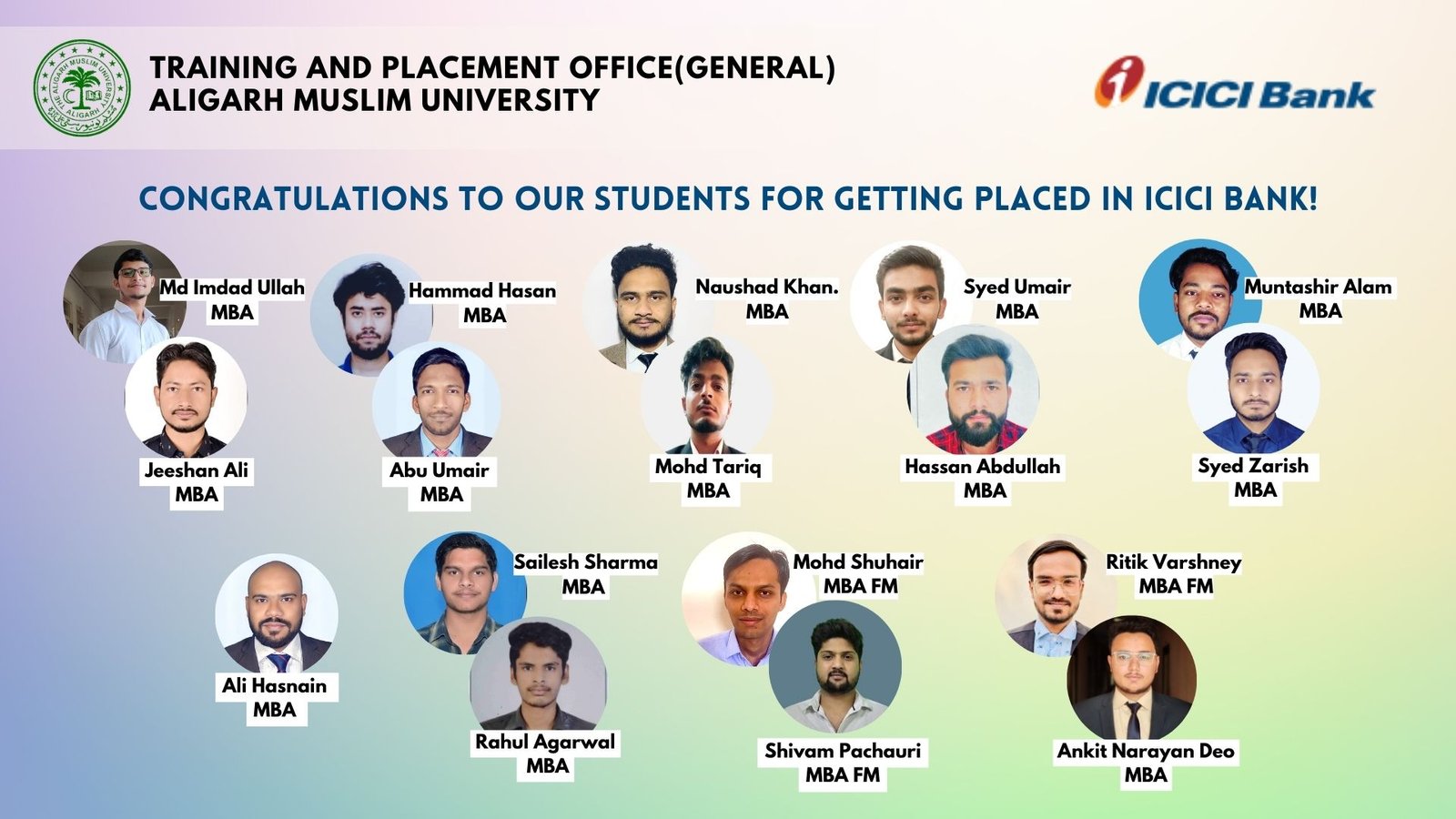 आईसीआईसीआई बैंक द्वारा 17 एएमयू छात्रों का चयन