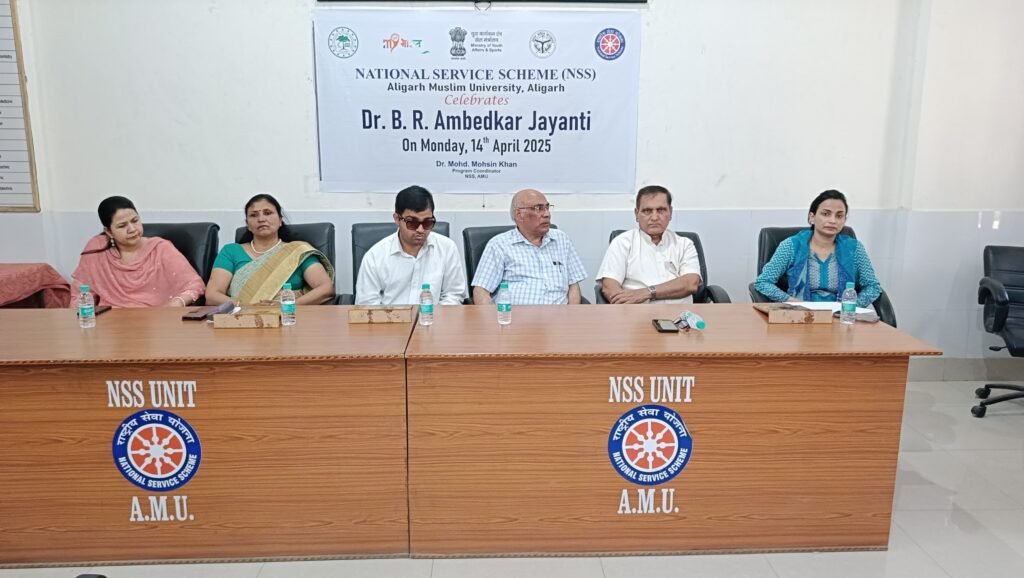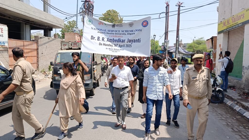 Aligarh, April 14, 2025: In accordance with the circular issued by the Ministry of Youth Affairs and Sports, Government of India, the National Service Scheme (NSS) unit of Aligarh Muslim University (AMU) commemorated the birth anniversary of Bharat Ratna Dr. B. R. Ambedkar with tremendous fervor and enthusiasm on April 14, 2025. A series of events, including a Padyatra, quiz competition, pledge ceremony, and a thought-provoking seminar on the theme “Role of Baba Saheb Dr. B. R. Ambedkar in the Upliftment of Backward Classes and Women,” were organized to mark the occasion.